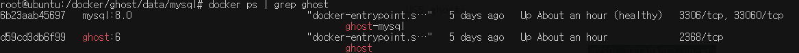 docker ps | grep ghost 결과: